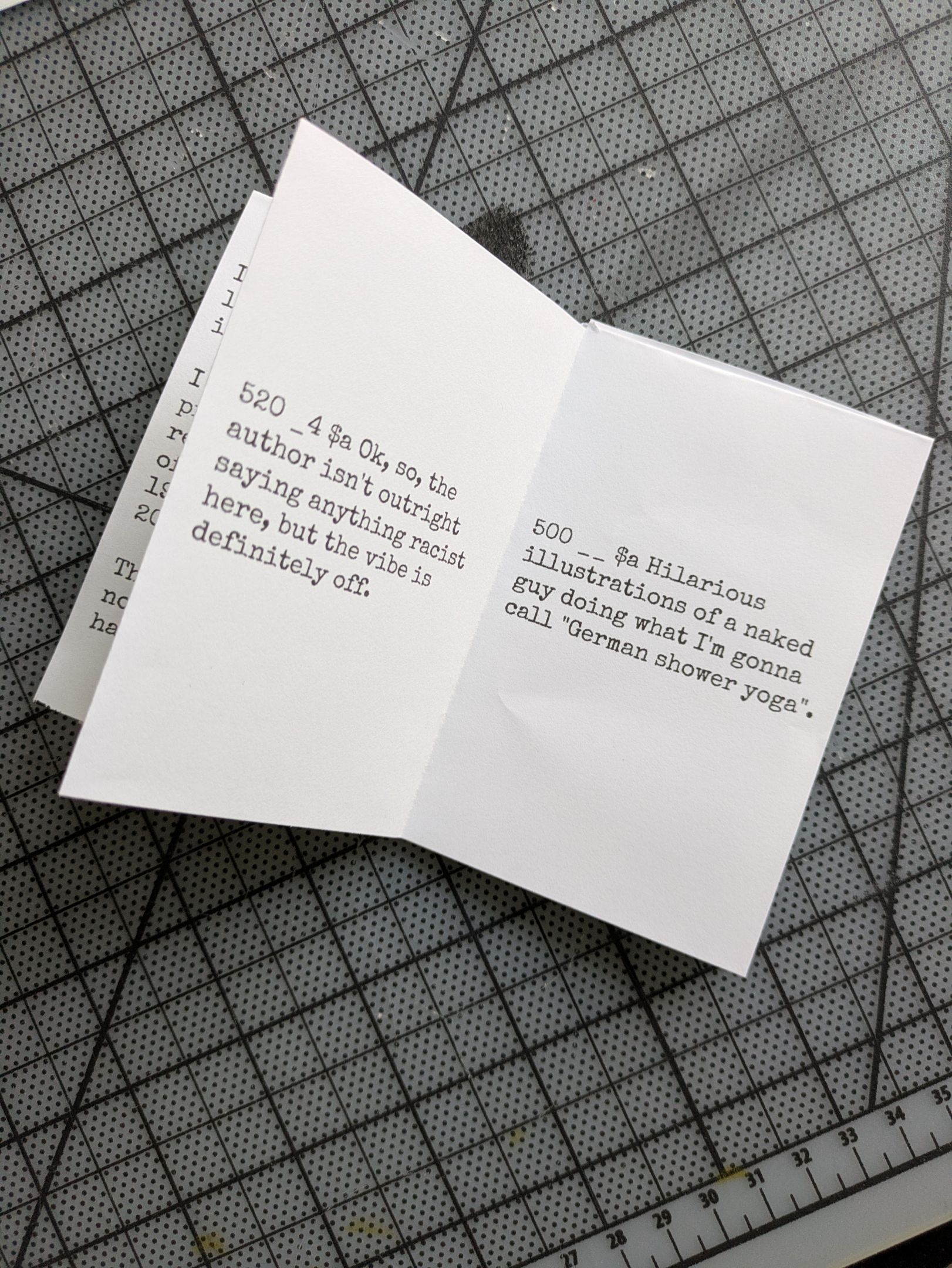 You can DIY this zine by printing the pdf double-sided on 8.5x11" paper and following the steps for a typical single-sheet, 8-page zine. I found smolghost's zine resources pack really helpful.